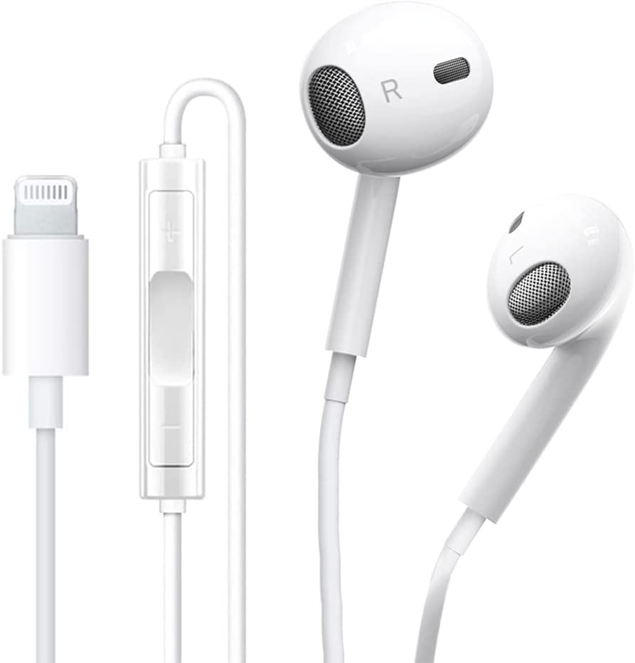 Apple MFi certified wired in ear stereo noise canceling isolating earphone with microphone and volume control for iPhone 13/12/11/SE/X, XR/XS/8/7
